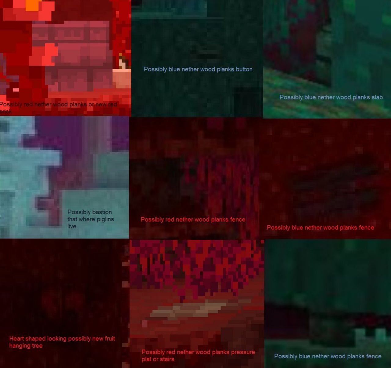 Per alcuni utenti gli easter egg presenti nelle immagini sono i nuovi tipi di legno e degli squarci di bastioni, un struttura del Nether dove i piglin avranno dimora.
