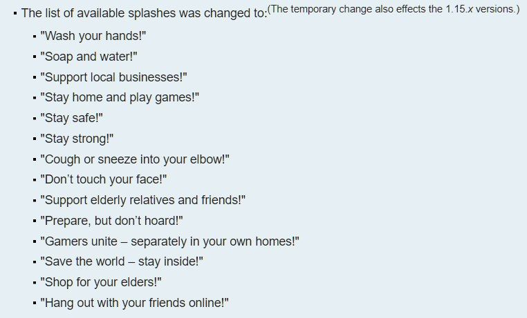 Per ricordare cosa fare durante la quarantena sono stati aggiunto degli splash screen per Java che saranno presenti fino alla fine dell'emergenza.