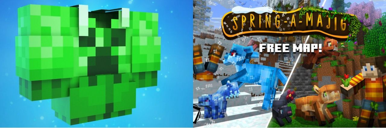 Inoltre, due contenuti sono disponibili gratuitamente. Il primo, presente nella sezione "abbigliamento da esterno" di Persona, è la felpa con cappuccio da creeper, mentre il secondo, nel Marketplace, è un bundle con due mappe primaverili, chiamato "Spring-a-majig".