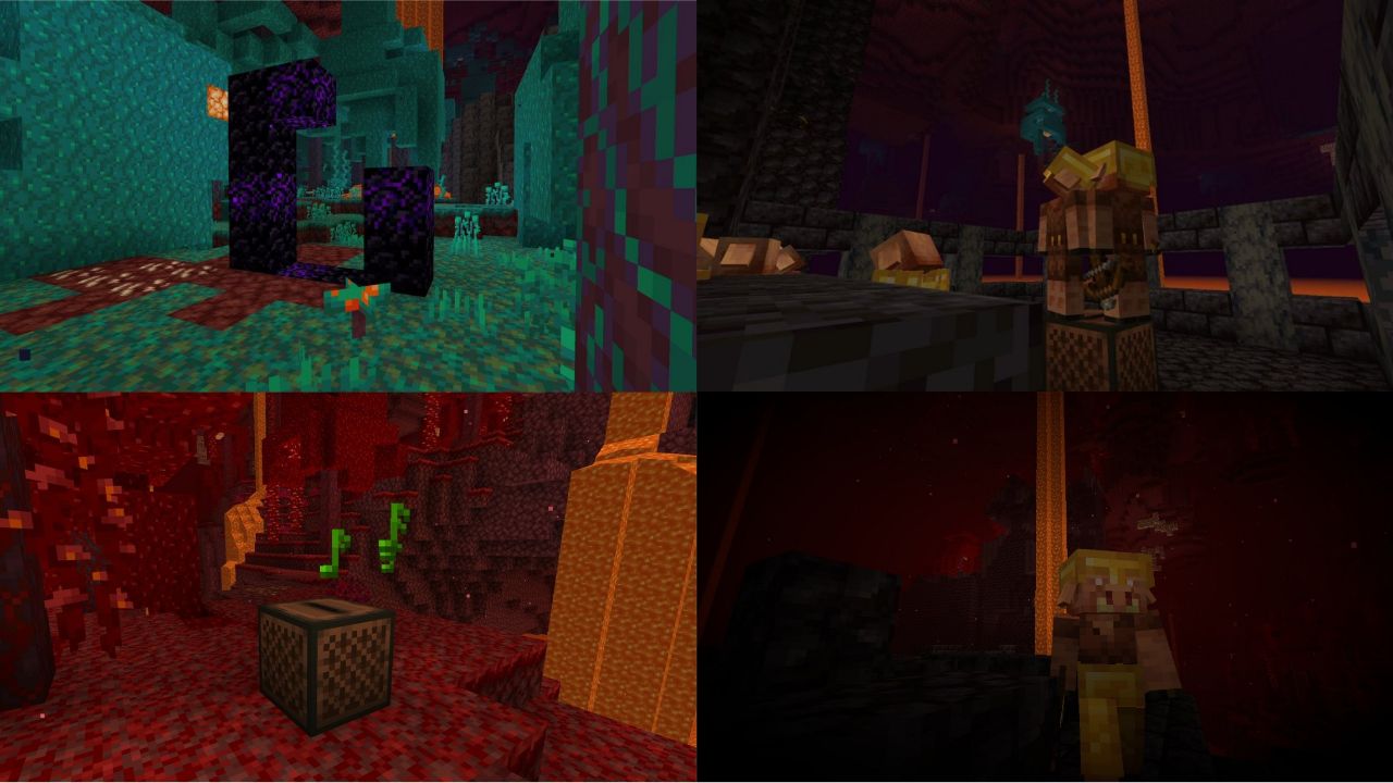➫ Aggiunto il pattern di stendardo piglin, il bioma di basalto a delta, il fuoco dell'anima e tre soundtrack nel Nether.