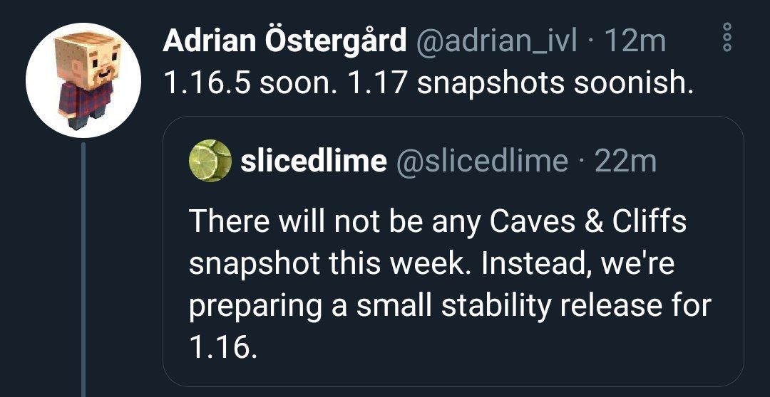 Gli sviluppatori sono ritornati al lavoro dopo le vacanze natalizie ed hanno annunciato che questa settimana è previsto il rilascio per la Java della 1.16.5 volta a stabilizzare la 1.16.