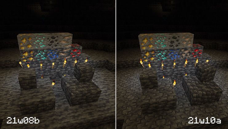 Ecco le nuove modifiche fatte in questo snapshot alle texture dei minerali, della deepslate e della cobbled deepslate.