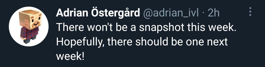 Per questa settimana non è previsto alcuno snapshot per Minecraft Java.
