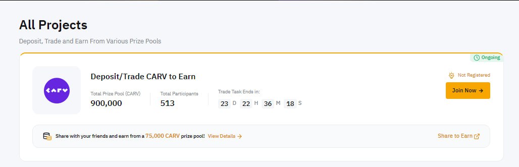 50 $CARV (~34$)- Награда за реферала: