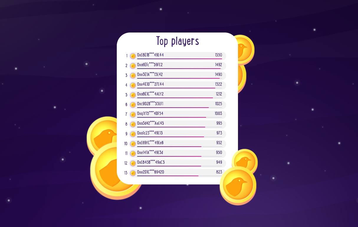 Throughout the day, a rating will be formed from the results of the players. At 00:00 UTC, the rating will be reset and the top 13 players will receive the prize pool.