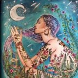 Here's a piece completed in February '24 featuring an art nouveau style poppy and pattern design and a hand sculpted and gilded serpent fylfot.