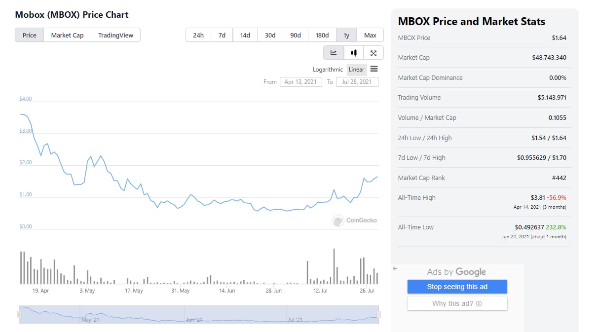 График заряжен, большого пампа ещё не было, крупных листингов на CEX тоже. Сайт сделан качественно, комьюнити большое активное. Токеномика продумана годно, есть постоянная поддержка цены от команды, в виде специального пула для байбека и сжигания токенов MBOX.