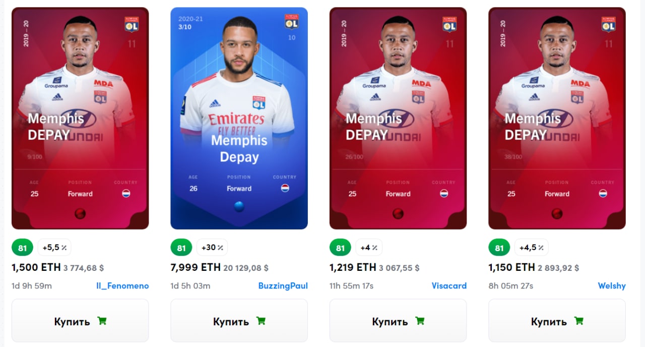The first deal is on Memphis Depay soccer player. The manager bought him about five months ago and didn't miss out. It was recently revealed that he will now play for the club Barcelona, which is a very good growth driver for the card. Since entering, the price has increased fivefold, but the upside potential is great, so the trade is still open.