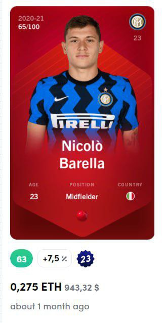 About a month ago he bought the card of Italian midfielder Nicolo Barella for only $943, and at the moment the market price is already around the $1500 mark. Now the profit is almost +60% and the manager is in no hurry to close the deal, as the growth potential has not been exhausted.