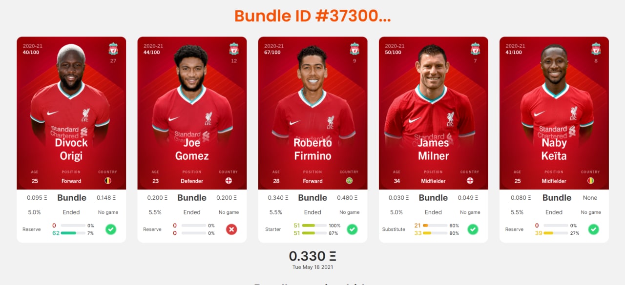 In May, our manager bought a pack of 5 Liverpool club players for $1000. It included Firmino, who is now worth about $850, good defender Gomez, who missed season because of injury, 2 interesting reserve players and veteran Milner. The manager has already made about +100% profit on this pack.