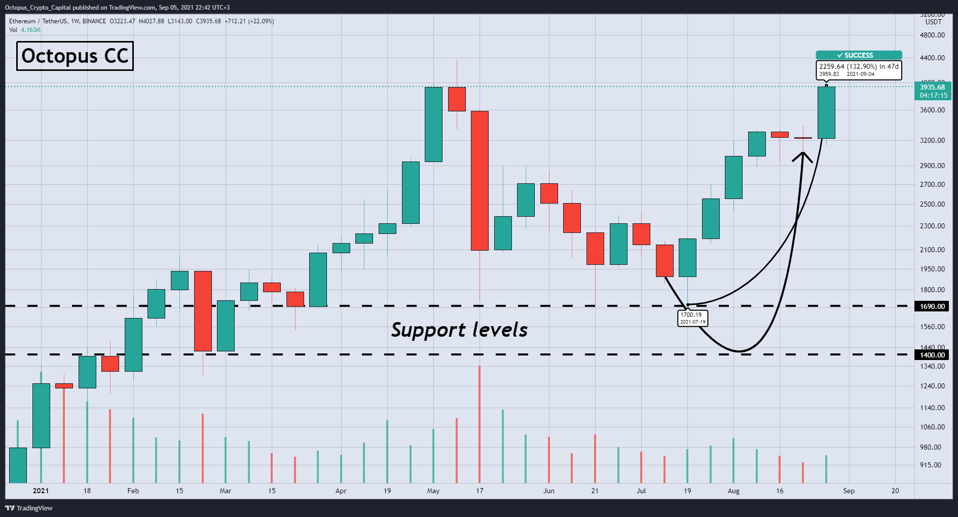 As we wrote in the last analysis, ETH went up. We expect continued growth.