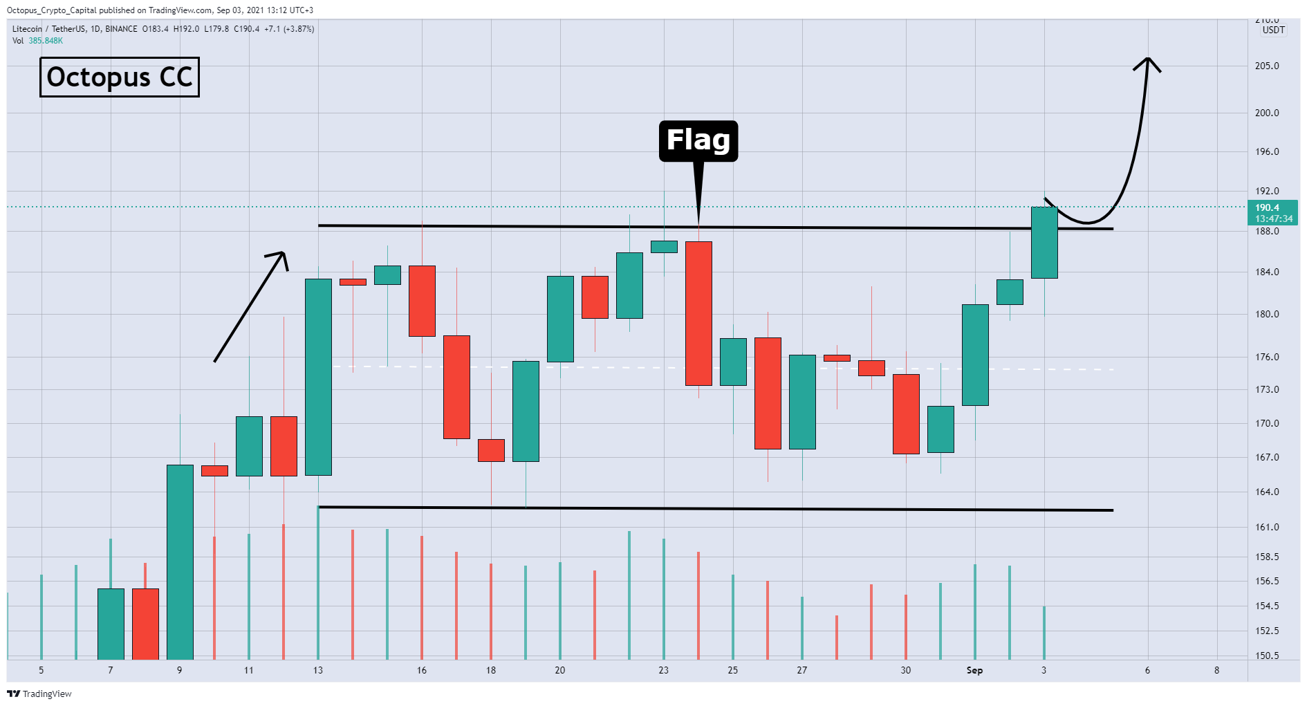 LTC/USD Analysis Let's consider the timeframe of 1 day. It can be noted that the flag pattern, which was formed after a strong price increase, is now beginning to work out. Now the price growth is most likely to continue. #Technicalanalysis