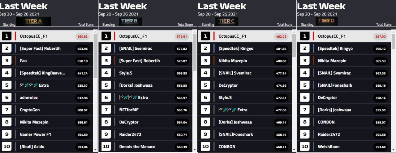 Today we are going to please you with great results of Octopus F1 pool. In the Time Trial tournament the pool got four first places 💪. For that, our pool will definitely be rewarded with a good amount of money.