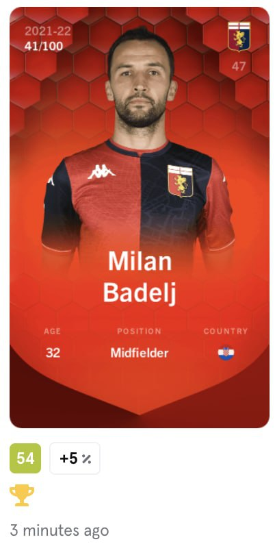 Let's start with a small one. This time our manager won a veteran Genoa card. The estimated value is 0.04 ETH ($85).
