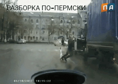 На видео с авторегистратора видно, как водитель «Мерседеса» подбегает к «Газели» и начинает выяснять отношения с её водителем, после чего последний выпрыгивает из кабины и пытается битой усмирить налётчика.