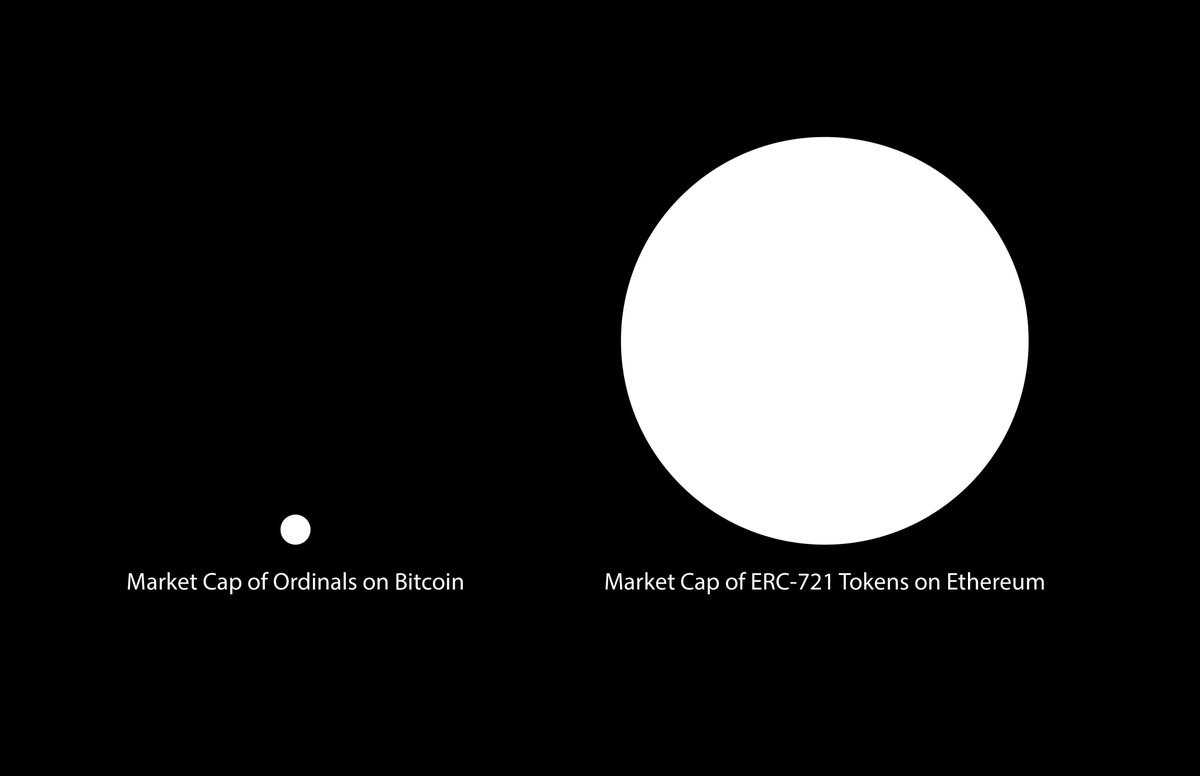 ⚪️ Визуальная разница между маркеткапом биткоин-NFT на протоколе Ordinals и ERC-271 токенами на Ethereum