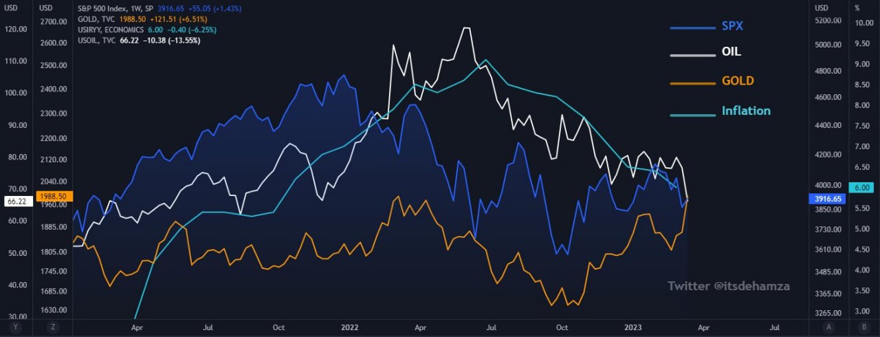 В одном месте встретились кривые графиков индекса S&P500, нефти, золота и инфляции