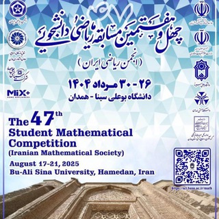 خبر فوری 🔊🔊🚨🚨🗞🗞👨🎓👩🎓 چهل و هفتمین مسابقه دانشجویی ریاضی ایران از ۲۶ تا ۳۰ مرداد ۱۴۰۴ به میزبانی دانشگاه بوعلی سینای همدان برگزار میشود. #47th @SCoIMS
