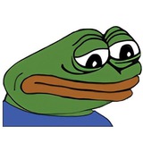 Sadge is an emote on Twitch depicting a flattened version of Pepe the Frog with a sad, disappointed expression and a downward glance. The emote is commonly