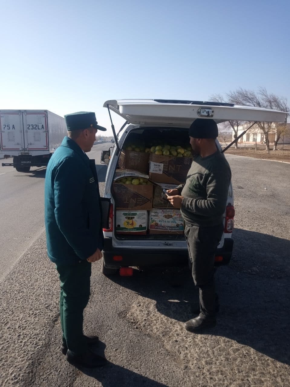 Жорий йилнинг 10 декабр куни Жиззах вилоятининг Бахмал туманидан ҳаракатланиб келаётган Дамас русумли автотраспорт воситаси тўхтатилганда унга юкланган 500 (беш юз) кг олма маҳсулоти олиб ўтилаётгани аниқ бўлди.