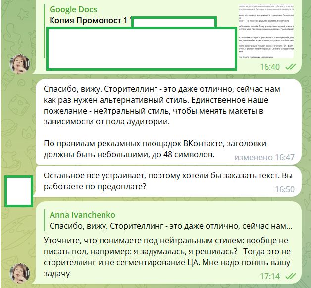 Год назад на меня вышла менеджер одного из проектов. Нужна серия промопостов. Всё обсудили, во всём разобрались. Посты написала, предоплату 100 % получила.