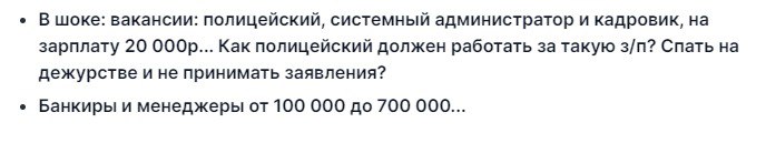 На днях одна российская соц.сеть выкатила обновление занятное. После этого обновления люди с изумлением узнали уровень дохода в предлагаемых вакансиях (см.фото). Коллега из Ассоциации директоров по развитию аж задался вопросом: а не фейк ли это? В комментариях начали отвечать сразу, что не фейк. Не зря же министр МВД Колокольцев сетовал на катастрофическую нехватку сотрудников в своём ведомстве. В прошлом году у него люди увольнялись отделами, лишь бы не ехать на так называемые «новые территории». Кому за 20 тыс. охота рисковать? Да и проф. Кричевский сегодня в своём канале вспомнил про зарплату учителя в 22,5 тыс.руб. А ведь ещё Бисмарк говорил, что «войны выигрывают не полководцы, а школьные учителя и священники». Но речь не об этом. Есть такой PEST-анализ. Руководство соц.сети, похоже, о нём не знает. Надо было догадаться за месяц до выборов «улучшить» продукт и показать массово информацию, которая противоречит официальной картинке из телевизора. Это выстрел даже не в ногу😎.