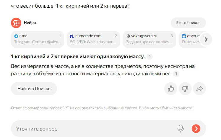 Что весит больше: 1 кг кирпичей или 2 кг перьев?
