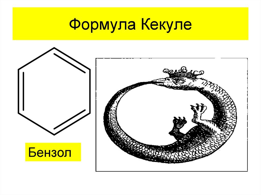 Немецкий химик Фридрих Август Кекуле и фон Страдо Нитц (1829-1896) в течение некоторого времени ломали голову над шестиуглеродной структурой бензола. В то время предполагалось, что все органические соединения имеют разомкнутую цепочку атомов углерода в качестве основы. Тем не менее, ряд свойств, проявляемых определенными молекулами, такими как бензол просто не может быть объяснен преобладающим предположением о прямой структуре углеродной цепи. Вспышка озарения Кекуле произошла в видении, когда он дремал перед камином. Вот его рассказ об этом важном открытии: