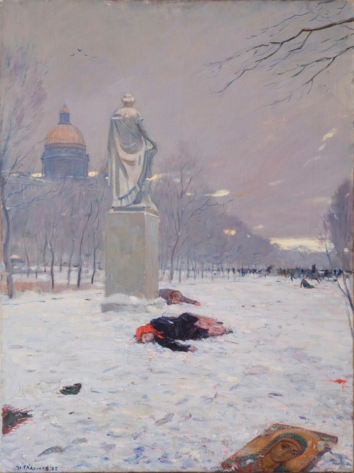На крещенские празднества Иордани 6 января 1905 года в Зимнем дворце в Петербурге был императорский выход и освящения знамен. Царю салютовали стрельбой из орудий. И едва не произошла катастрофа: одно из орудий оказалось заряженным старой картечью, которая, по-видимому, осталась там с учений. Несколько пуль попали в окна Николаевского зала Зимнего дворца: одна сильно ранила городового (как ни странно, по фамилии Романов), а другая попала в древко знамени морского корпуса в нескольких шагах от Николая II; чуть правее - и,скорее всего, император был бы смертельно ранен. Все, конечно, начали думать о том, что это было покушение.