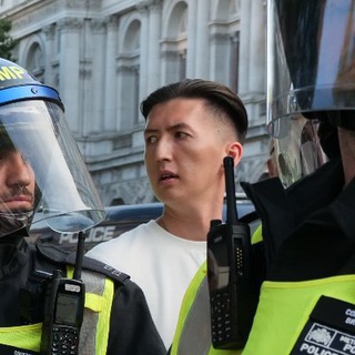 Context: Stand Up To Racism protesters were getting their royal police escort back to Epping Station. Local protesters could have potentially ambushed them and come out from the trees as they're walking. Officer then gives his orders