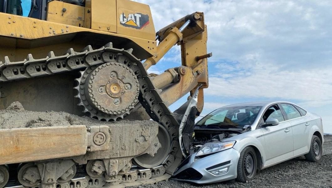 Бульдозер «Норникеля» раздавил машину полицейских. Они приехали на вызов о сливе ядовитых отходов в реку