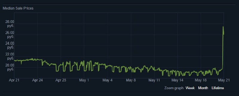 В целом, прогноз таков: если не будет никаких сюрпризов от Valve, то до конца июня мы растём, потом летняя распродажа и лёгкая просадка. После неё ждём восстановление цены и снова начинаем рост. А тут, глядишь, и "летний буст" пожалует 😉
