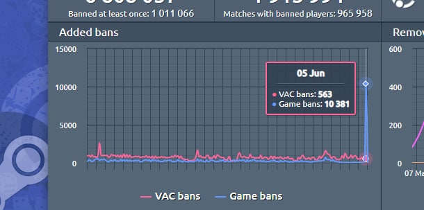 В этот раз они дали игровую блокировку на аккаунты многих фермеров (~10000 штук), которые нечестным путём фармили ранг в игре через различные лазейки. К примеру, одной из таких лазеек были дисконекты в ММ, благодаря которым удавалось прокачивать уровень в разы быстрее.