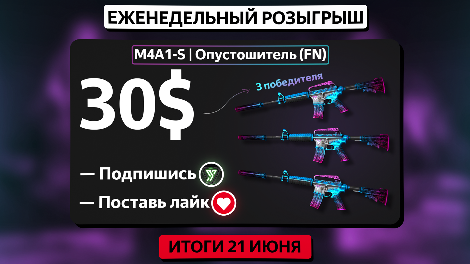 ⚡️ Победители розыгрыша: M4A1-S | Опустошитель (Прямо с завода)