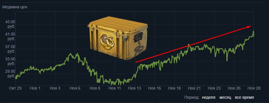 Подобные новости не могут не радовать инвесторов этого кейса, т.к. впереди ещё декабрь, в период которого все предметы на рынке уверенно растут в цене из-за увеличения спроса (вплоть до начала января).