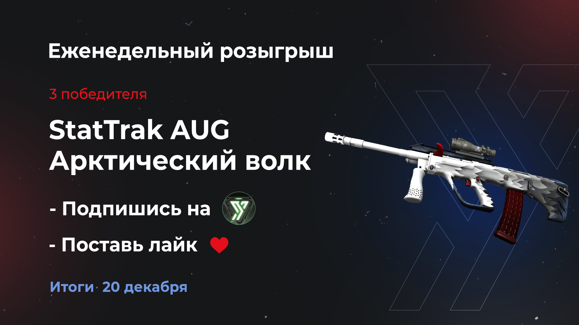 🎁 StatTrak AUG | Арктический волк (немного поношенное) 3 победителя, по одному АУГ'у в руки! — Лайк под 👉🏻 этой записью — Подписка 👉🏻 Уголок Трейдера 🗓 Итоги: 20 декабря