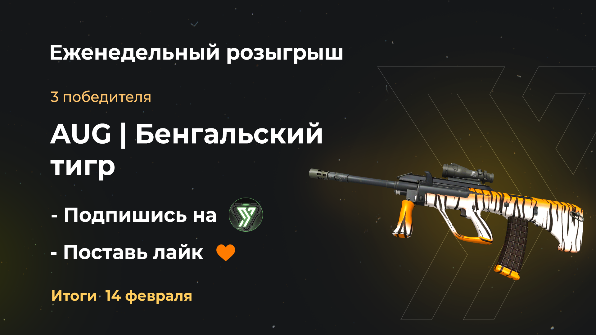 🎁 AUG | Бенгальский тигр (немного поношенное) 3 победителя, по одному стволу в руки! — Лайк под 👉🏻 этой записью — Подписка 👉🏻 Уголок Трейдера 🗓 Итоги: 14 февраля