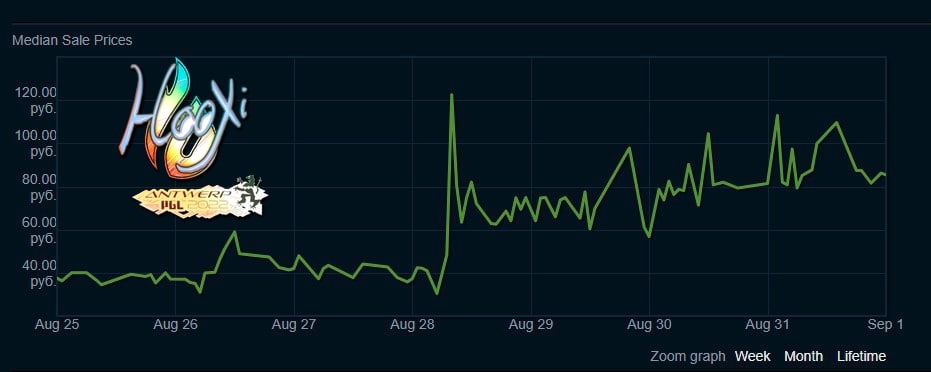 Да так, чтобы цена ещё не откатилась. С этим справляется стикер Sticker | HooXi (Holo) | Antwerp 2022.
