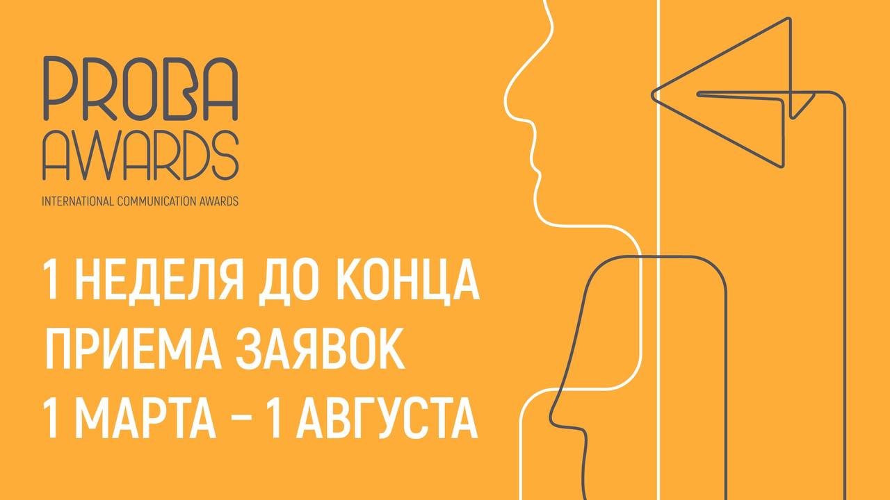 До конца приёма заявок на международную премию по коммуникациям PROBA Awards осталась 1 неделя!