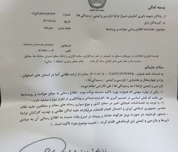 Обнародован документ, свидетельствующий о том, что отдельные военнослужащие армии Ирана и члены их семей поддерживают протесты (иранский оппозиционный сайт Iran International).