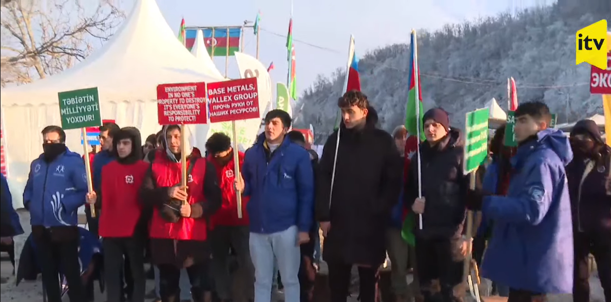 Акция протеста азербайджанских активистов в Шуше против эксплуатации полезных ископаемых в Карабахе продолжается уже 11-й день. Несмотря на холодную погоду, участники поют гимн Азербайджана, скандируют лозунги: «Остановите экологическое преступление!», «Остановите экотеррор!» (прямой эфир İctimai TV)