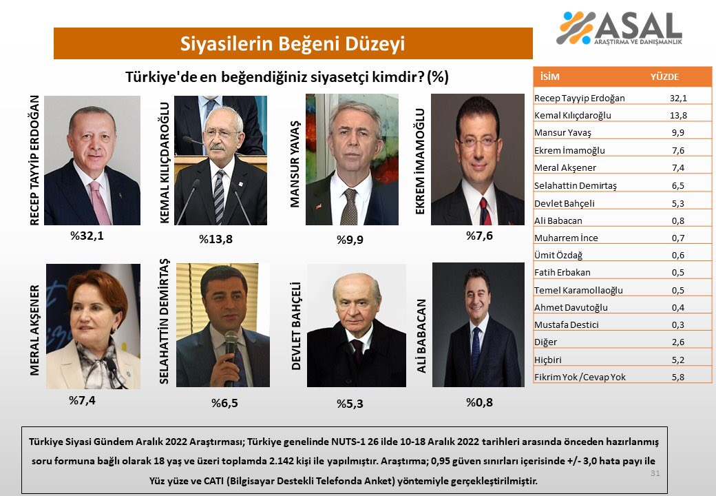 🇹🇷Турецкая исследовательская компания Asal Araştırma: Эрдоган - самый любимый политик турецкой общественности (Twitter-аккаунт Asal Araştırma).