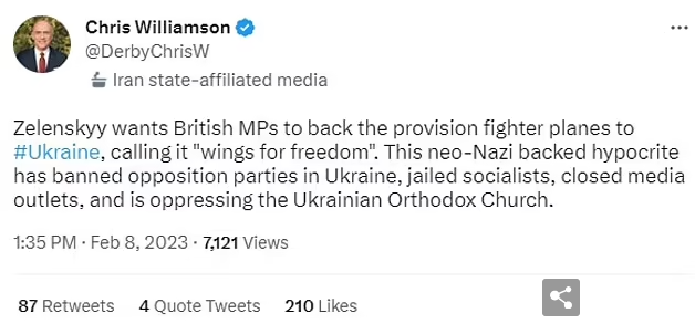 🇬🇧🇺🇦🇮🇷 Бывший британский депутат от Лейбористской партии Крис Уильямсон лишен пропускного билета в парламент страны из-за его работы на иранском государственном телеканале PressTV и заявлений о том, что Зеленского «поддерживают нацисты» (британская газета Daily Mail).