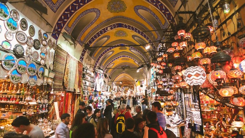 У меня глаза разбегались от красок и ассортимента товаров: сувениры, керамика, драгоценные украшения, текстиль, кожаные изделия, ковры, платки, шали, посуда, амулеты, кофе, специи и многое другое. Цены высоковаты. На других рынках Стамбула можно найти всё то же самое, только дешевле. Если уж вещь очень понравилась и нет времени посещать другие места — обязательно торгуйтесь.