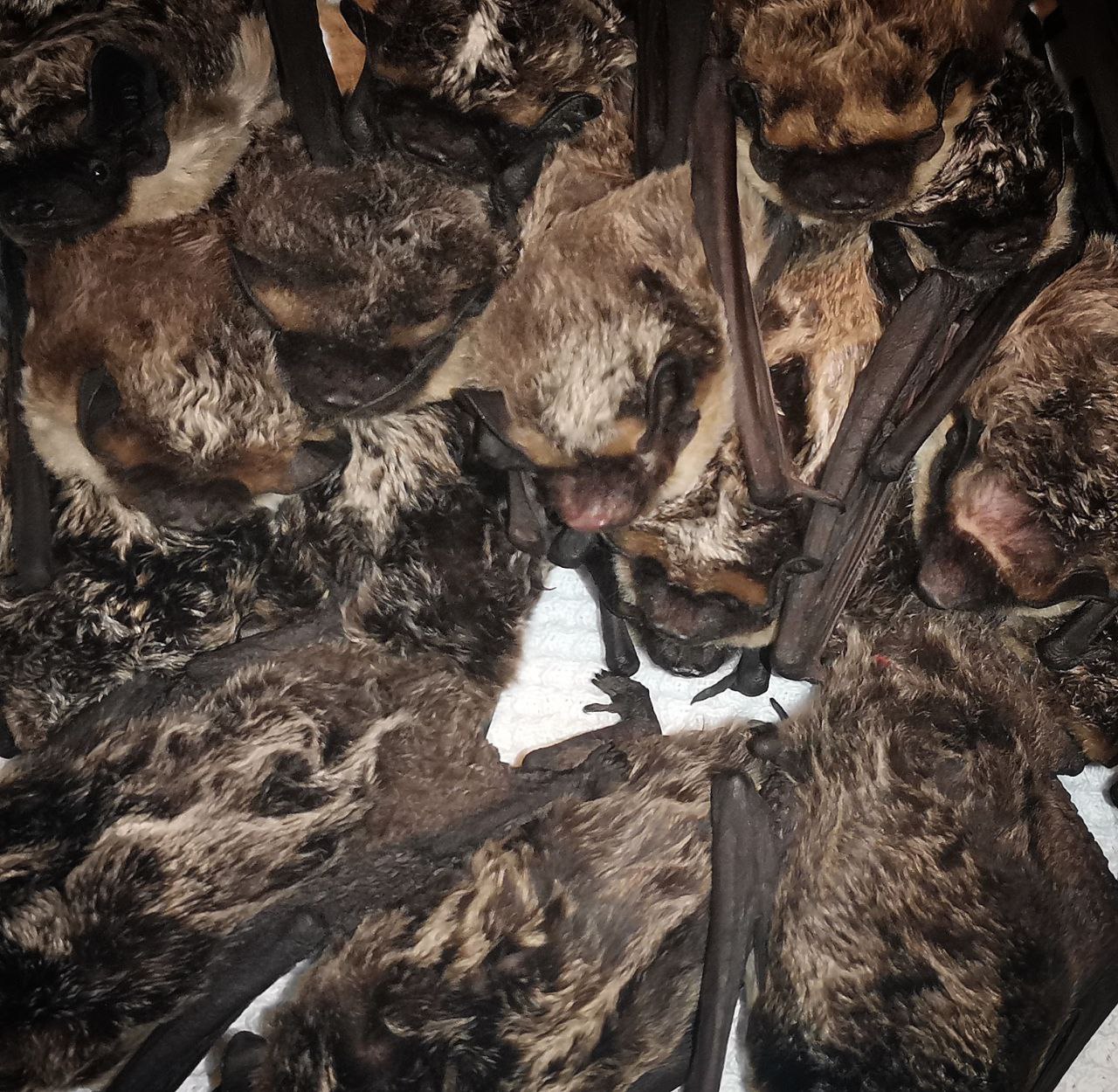 На фото часть спящих двухцветных кожанов в холодильнике (плановое взвешивание, с наступлением тепла все будут выпущены в природу)