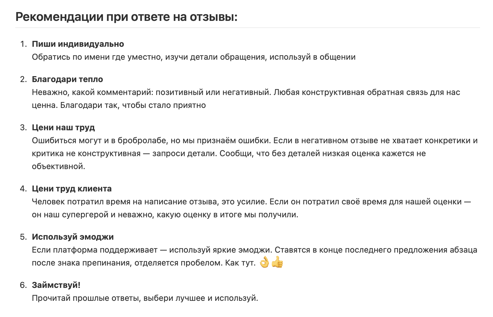 Бонусом всем, кто дочитал до конца — скриншот наших рекомендаций при ответах на отзывы. Продолжайте комментировать, вы бесподобны!