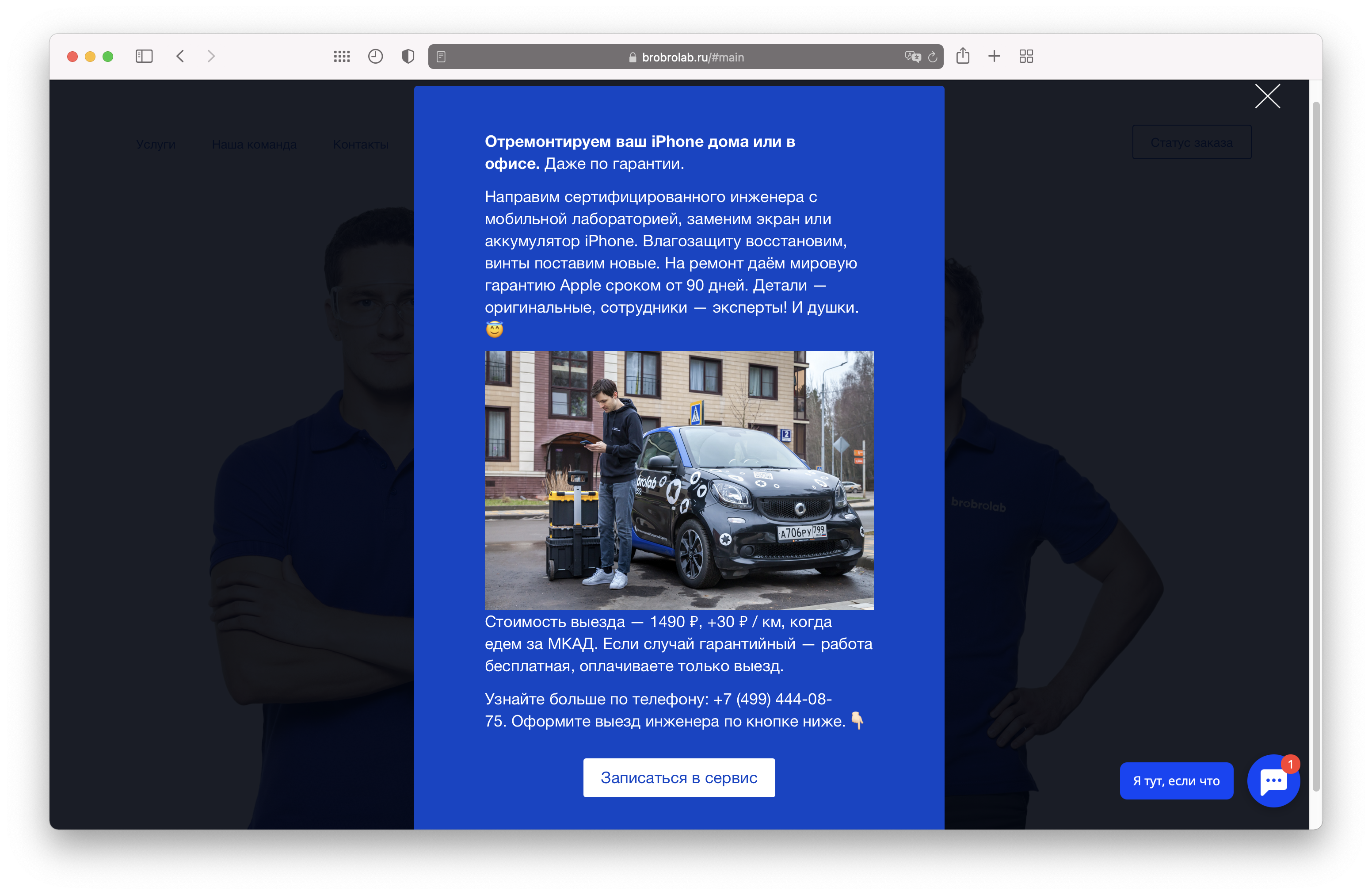 Вы знаете, бробролаб — единственный авторизованный сервис в России, который ремонтирует iPhone дома или в офисе у клиентов. Даже по гарантии. Единственный в России, но скорее всего и единственный в мире, кто ремонтирует новейшие iPhone 12-го и 13-го поколений. В США, например, не могут.