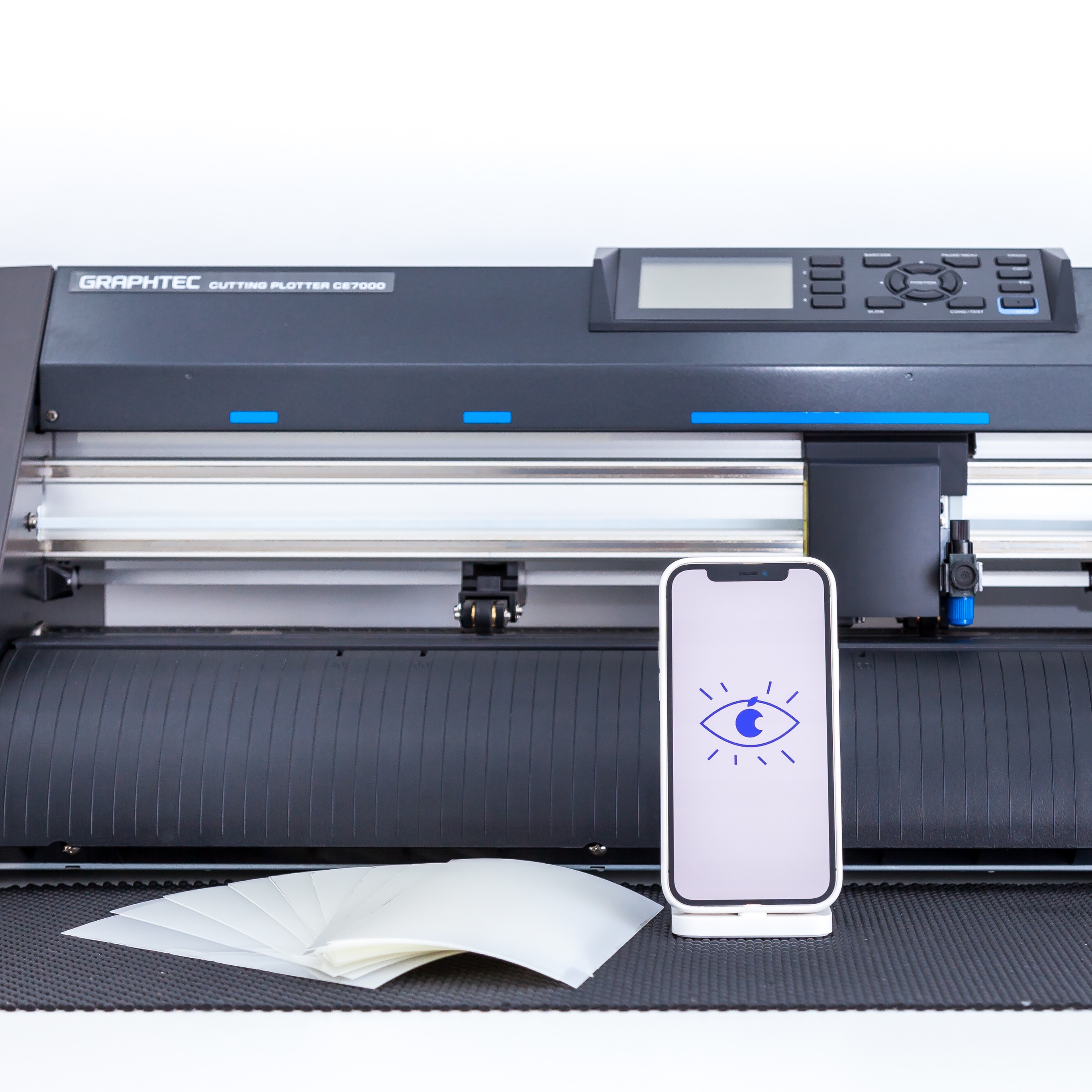 Выбрали профессиональный плоттер для нарезки плёнки с шириной реза до 48,4 см — Graphtec CE7000-40. С таким размером сможем резать плёнку на все MacBook и iPad. А на iMac — не сможем.