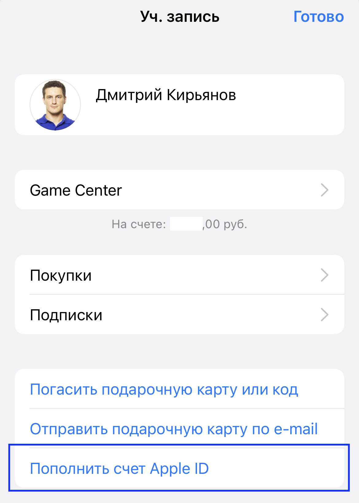 Самый простой способ — внести средства на счёт Apple ID. Открываете AppStore и выбираете «Пополнить Apple ID». Вот инструкция.