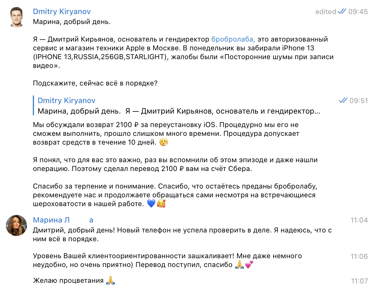 Подумал — ну и бог с этими 2100 ₽. Лояльный клиент дороже и круто, когда полномочия есть. Процедуру возврата перепишем.